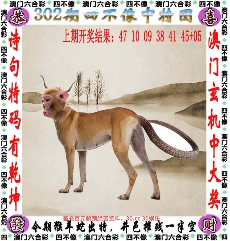 | 302期:平特连肖【猴猪龙牛兔】开4个 |